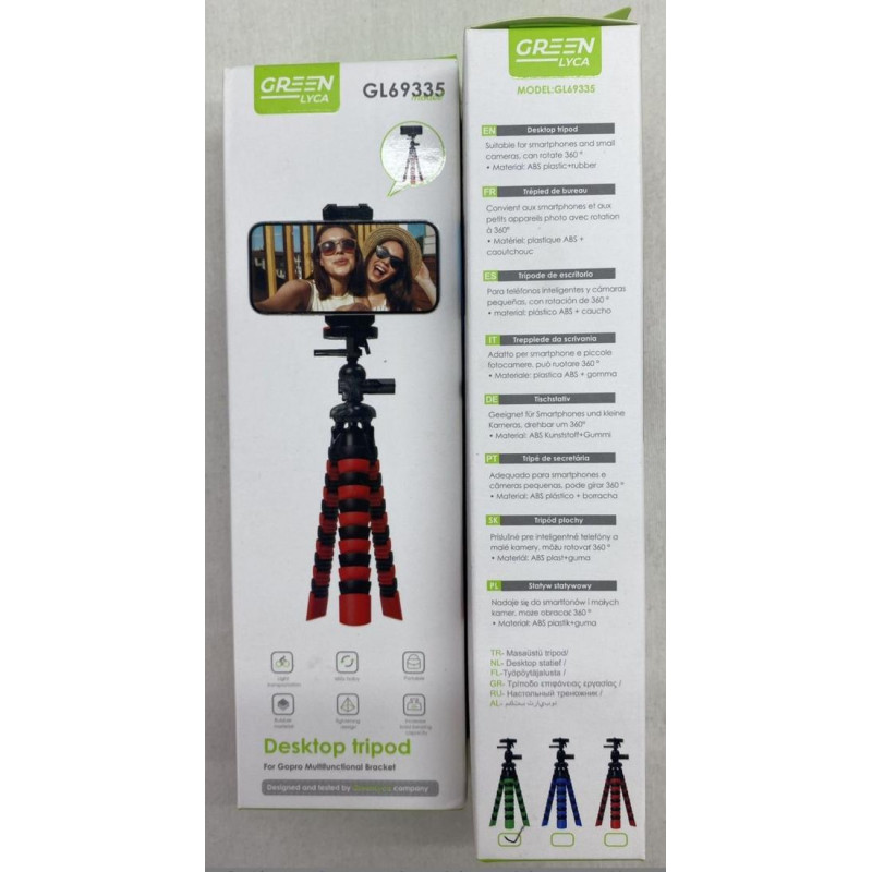 El Trípode Greenlyca Flexible es el accesorio perfecto para capturar tus momentos desde cualquier perspectiva. Diseñado para ofrecer la máxima adaptabilidad, este trípode cuenta con patas flexibles que se ajustan a diversas superficies y objetos, asegurando estabilidad y el ángulo ideal para tus fotos y videos.