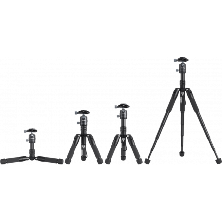 Con una longitud plegada de solo 18 cm, este trípode es extremadamente portátil y fácil de transportar en cualquier mochila o bolsa de cámara. A pesar de su tamaño compacto, ofrece una gran estabilidad gracias a sus patas de aleación de aluminio plegables y a su diseño de columna central.