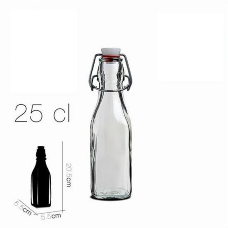 Descubre la versatilidad y el diseño clásico de la Botella Swing de Bormioli, un recipiente ideal para almacenar y servir una variedad de líquidos con estilo y seguridad. Fabricada en cristal transparente de alta calidad, esta botella de 250 ml es perfecta para aceites, vinagres, salsas, aderezos o incluso bebidas caseras como zumos y licores.