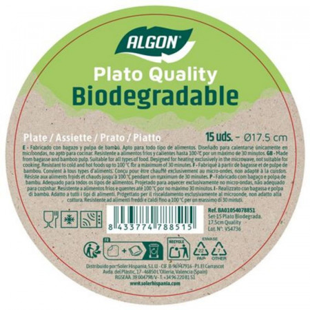 Opta por una solución ecológica y práctica para tus comidas con el Set de 15 Platos Biodegradables Algon de 17,5 cm. Diseñados pensando en la sostenibilidad, estos platos son la alternativa perfecta a la vajilla de plástico de un solo uso, contribuyendo a la reducción de residuos y al cuidado del medio ambiente.