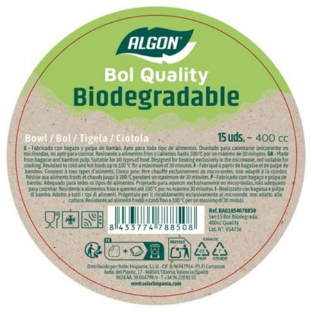 Descubre el compromiso con el planeta sin renunciar a la comodidad con el Set de 15 Boles Biodegradables Algon de 400cc. Estos cuencos, fabricados a partir de innovadores materiales como el bagazo (residuo de la caña de azúcar) y la pulpa de bambú, ofrecen una alternativa ecológica y funcional a la vajilla de plástico tradicional.