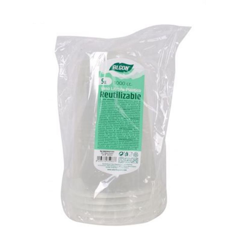 Optimiza tus reuniones y eventos con el práctico Set de 25 Vasos Reutilizables Algon de 1000ml. Estos vasos, conocidos popularmente como 'litronas' por su gran capacidad, son la solución ideal para servir bebidas en grandes cantidades sin sacrificar la sostenibilidad.
