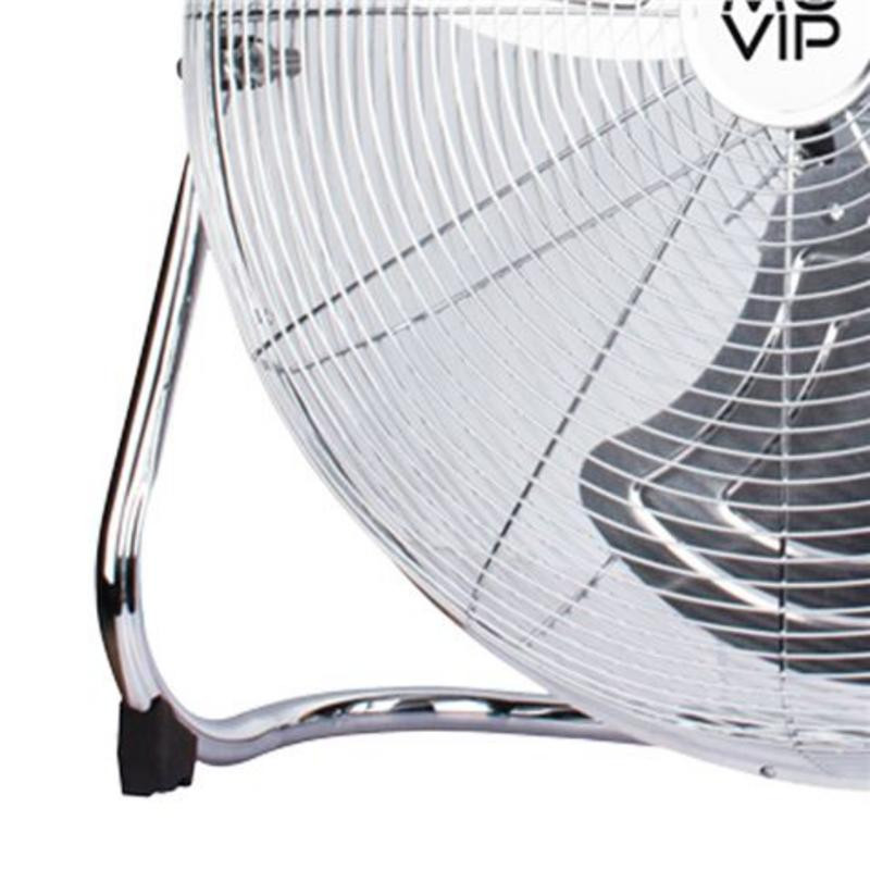 Fabricado completamente en metal con un elegante acabado cromado, el ventilador Muvip cuenta con 3 aspas de aluminio de alto rendimiento que garantizan un flujo de aire constante y efectivo. Su motor de 140W asegura una operación potente y fiable, mientras que sus tres velocidades ajustables, controladas mediante un cómodo pulsador, te permiten adaptar la intensidad según tus necesidades.
