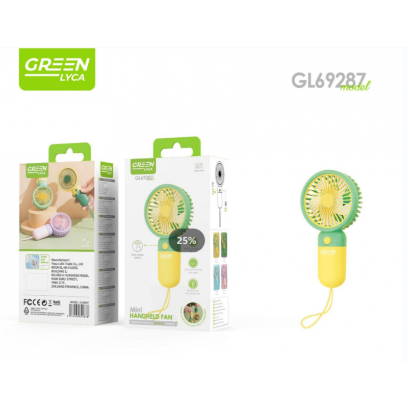 El Ventilador de Mano Green Lyca Recargable (GL69287) es el compañero perfecto para combatir el calor en cualquier situación. Diseñado para ser ligero y portátil, este mini ventilador se convertirá en tu aliado indispensable durante los días calurosos, viajes, paseos al aire libre o en tu oficina. Su diseño ergonómico y su tamaño compacto permiten llevarlo cómodamente en el bolso o la mochila.