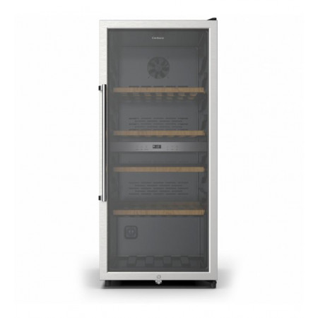 La vinoteca Corberó CFKWC91SWDZ es la solución perfecta para los amantes del vino que buscan una conservación óptima y un control preciso de sus botellas. Con una impresionante capacidad para 91 botellas y un volumen neto total de 200 litros, este elegante electrodoméstico combina funcionalidad con un diseño moderno en acero inoxidable y cristal.