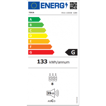- Eficiencia energética: Clasificación G con un consumo anual optimizado de 133 kWh.