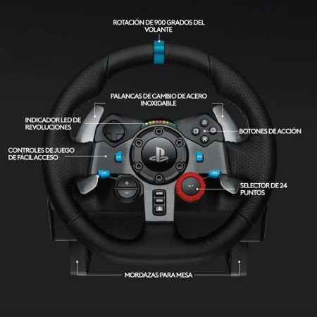El G29 Driving Force cuenta con un diseño robusto y duradero, con materiales de alta calidad como el cuero cosido a mano y el acero inoxidable. Sus pedales ajustables te permiten personalizar la configuración para adaptarla a tu estilo de conducción, mientras que la rotación de 900 grados te proporciona un control preciso en cada curva.