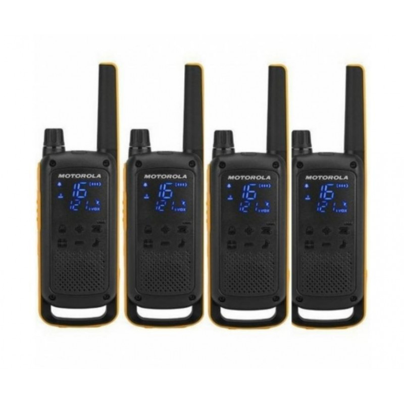 El walkie talkie Motorola T82 Extreme Quad Pack es el compañero ideal para tus aventuras más desafiantes. Diseñado para ser resistente y confiable, este pack incluye cuatro dispositivos que garantizan comunicación clara y eficaz en entornos extremos.